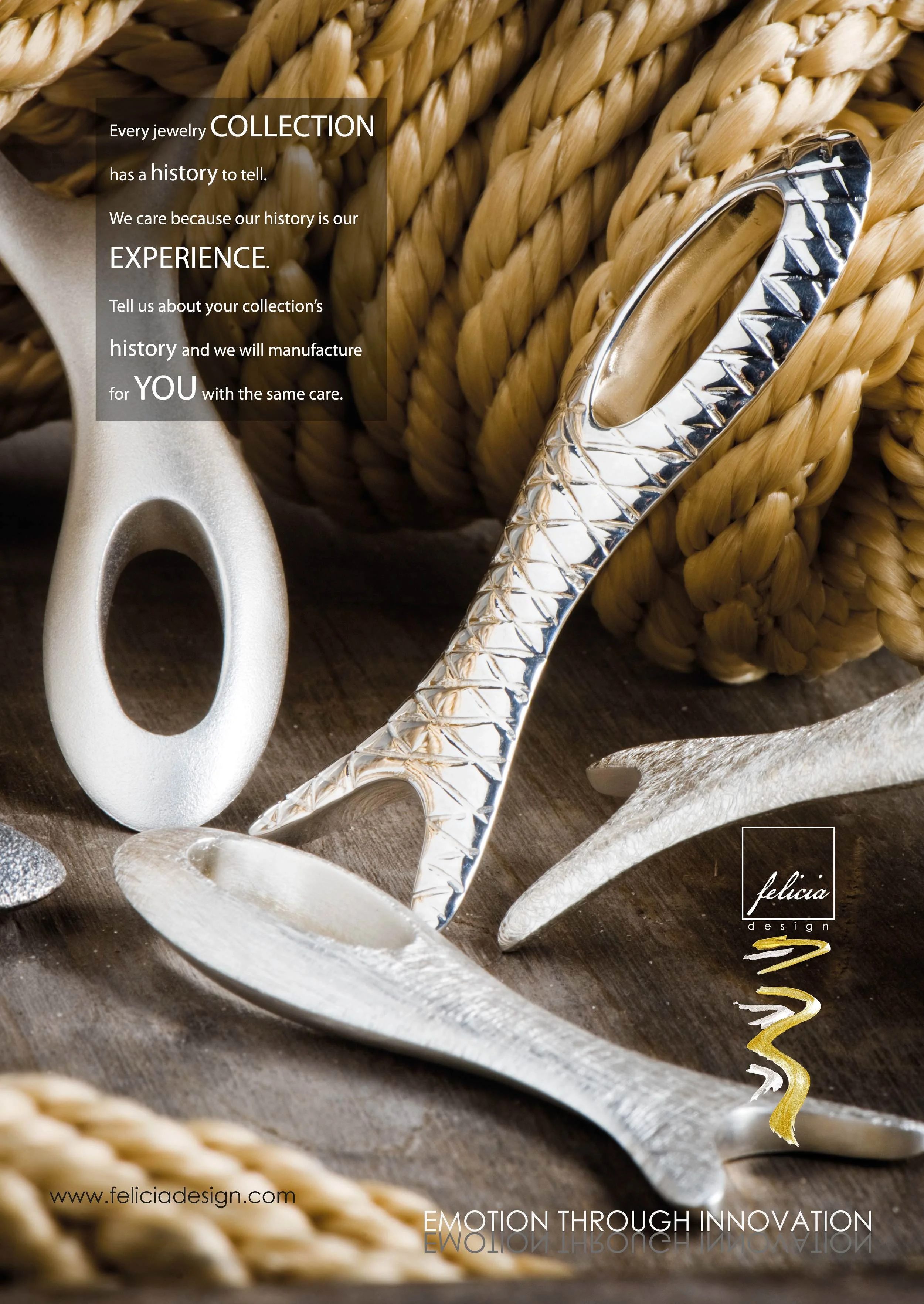 Felicia Design uses advertising to showcase manufacturing skill in design or production techniques. Our experience with 925 Sterling Silver is the showcase for most advertising. Brands and designers need a partner who understands them and their manufacturing requirements. Our advertising is meant to show this skill.